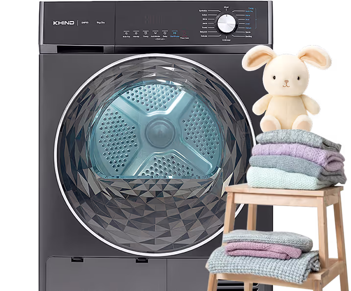 Dengan KHIND DryMaster Heat-Pump Dryer, pengeringan pakaian bukan sahaja pantas dan efisien, tetapi juga selamat dan mesra pakaian. Ia menjadikan rutin harian lebih mudah, memberi anda lebih banyak masa untuk perkara yang lebih penting dalam hidup. Musim hujan atau sibuk dengan kerja, pakaian tetap kering, lembut, dan sedia dipakai – semuanya diuruskan oleh DryMaster dengan sempurna.